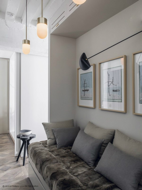Skrytá koupelna za dřevěnými dvířky! I takovým způsobem se dá manipulovat s prostorem. Díky zrcadlům se prostor prodlouží a opticky vyrovná.