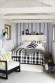 Obývací pokoj neutrálních barvách rozzařuje modrá rohová pohovka. Pohodlné sezení na prostorné sedačce ve skandinávském stylu je zpříjemněno barevnými bavlněnými polštáři. Obývací pokoj je dále vybaven konferenčním stolem oblých tvarů, který je vyroben ze dřeva a je ponechán i v tomto přírodním odstínu. Pod stolkem je položen kusový koberec s dlouhým vláknem v hnědé barvě. Sezení pak oživuje bílý přídavný stolek s květinou.