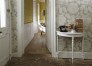 Prosklená fasáda domu umožňuje jeho obyvatelům jíst pokaždé s přímým výhledem na živou přírodu. A přírodní jsou i materiály, ze kterých je nábytek v jídelně vyroben. Při jídle se majitelé koukají do zahrady ze svých dřevěných židlí, přistavených k masivnímu dřevěnému jídelnímu stolu. Interiér doplňuje čalouněné křeslo, vysoký stoleček s vázou živých květin a především měděný lustr se svícemi.