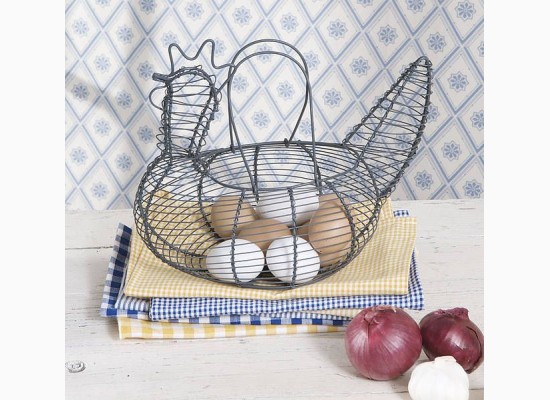 Zinkový košík s oušky ve tvaru slepičky - nejen na vajíčka, lze použít i na jablka, cibuli , česnek apod. Rozměry: průměr 18 cm, délka 35 cm, výška 26,5 cm. Postavte tento krásný košík do jídelny nebo kuchyně!
